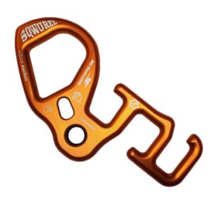 El punto de enganche se adapta a la mayoría de los mosquetones XL y cuenta con una «junta tórica» de goma que mantiene el descensor en su lugar.